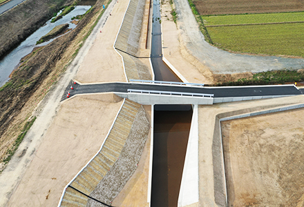 道路、橋、トンネル、河川など地域社会のインフラを整備し、地域の人々の生活環境と経済活動を豊かにする工事を行っております。